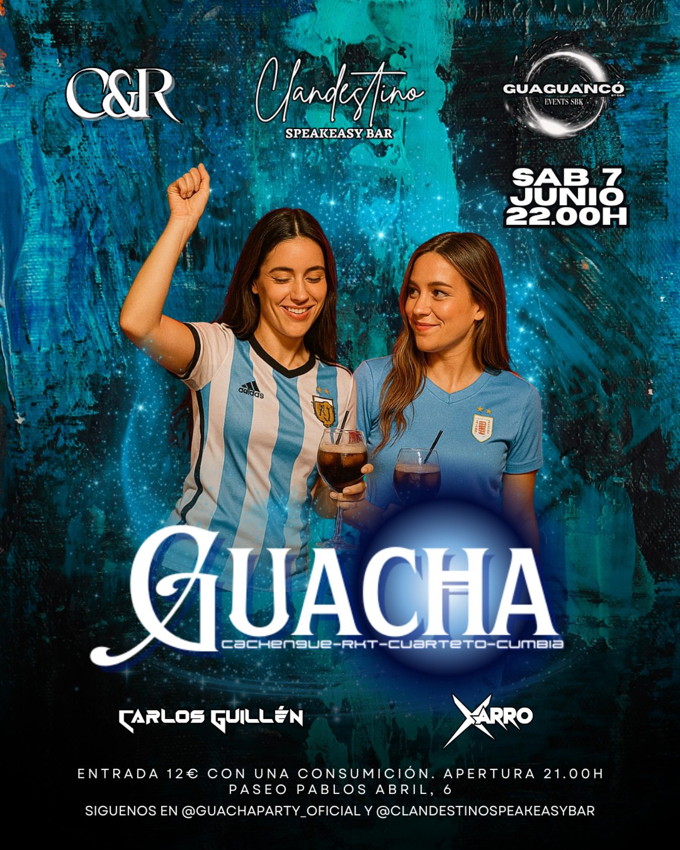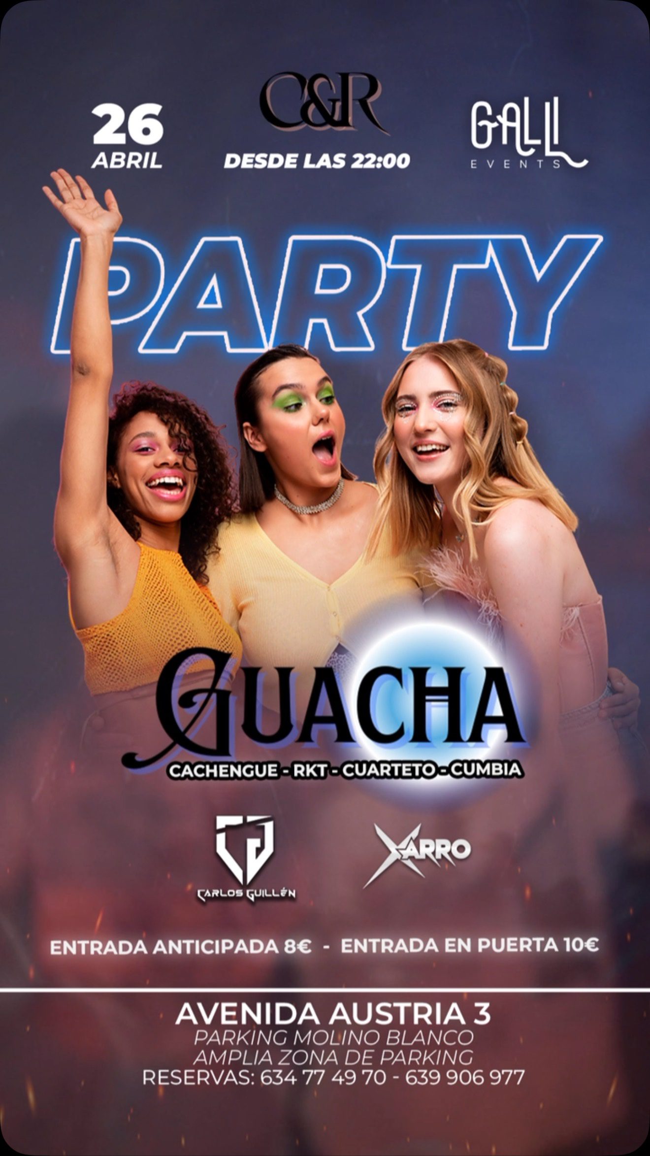 ¡Preparate para la fiesta que te transporta directo a la esencia de Argentina/Uruguaya! Guacha Party es nuestra propuesta más vibrante y enérgica, donde el cachengue, el RKT, el cuarteto y la cumbia se fusionan para crear una noche de baile y pura diversión. Si buscas una fiesta con ritmo contagioso, un ambiente lleno de alegría y la auténtica onda argentina, ¡Guacha es tu lugar!